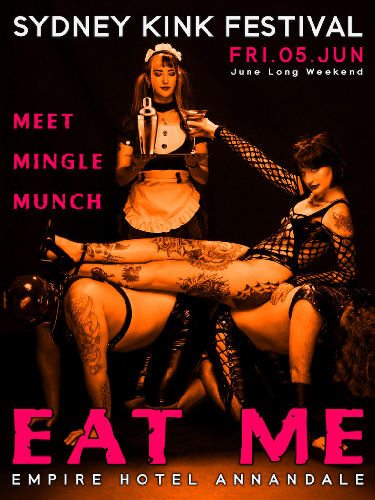 Come dressed to impress or keep it casual as you settle into the long weekend. With the dark, moody aesthetic of the Annandale scene as your backdrop, EAT ME is your official entry point into a weekend of high-octane kink and uninhibited expression. Grab a cocktail, find a seat, and prepare your appetite for everything the Sydney Kink Festival has in store.